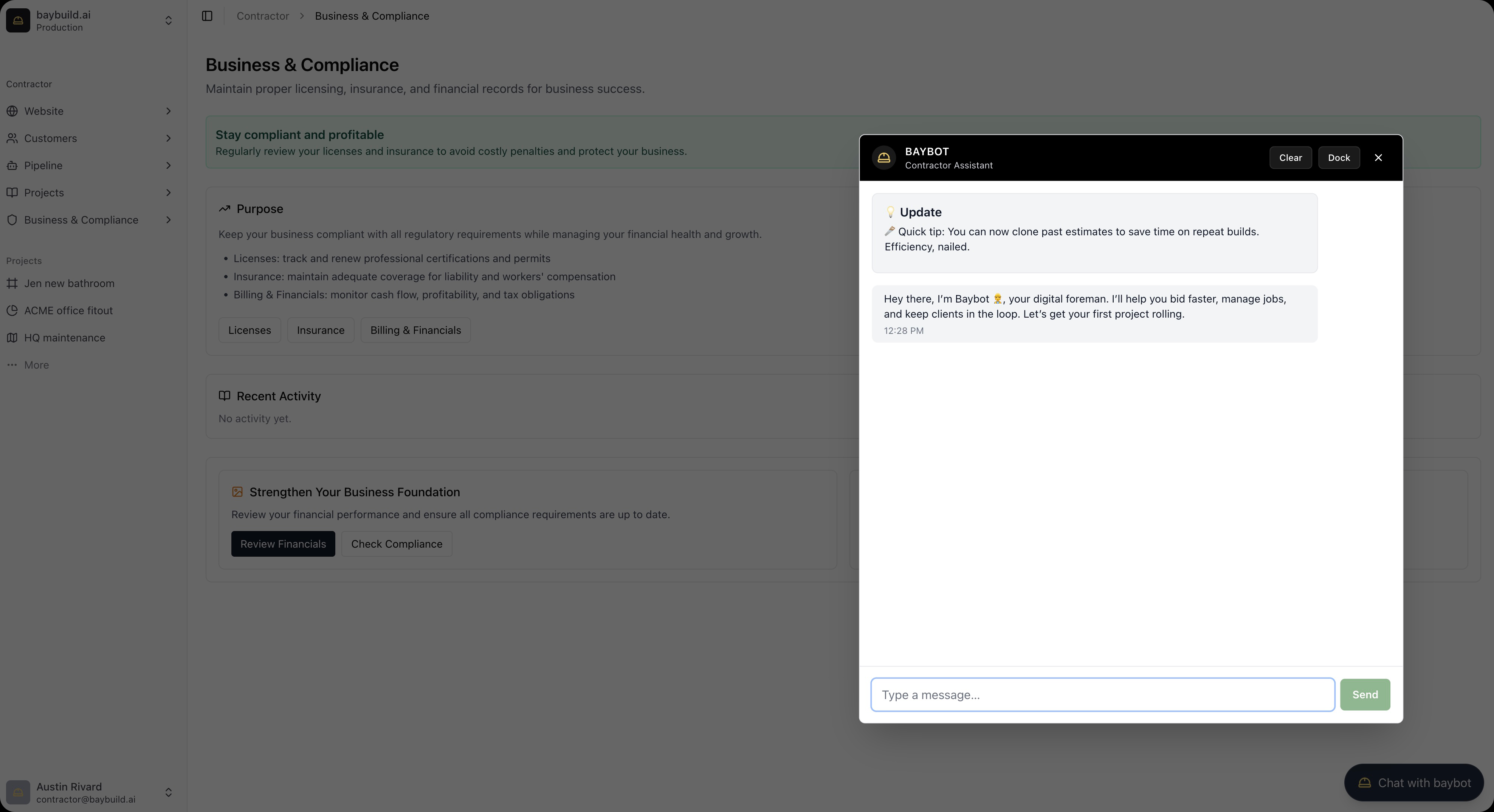 A unified workspace for leads, jobs, bids, and billing.